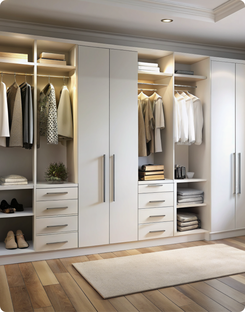 Однозначного ответа здесь нет. Можно сначала установить встроенный шкаф, а потом сделать натяжной потолок или наоборот – каждый вариант имеет свои плюсы и минусы.